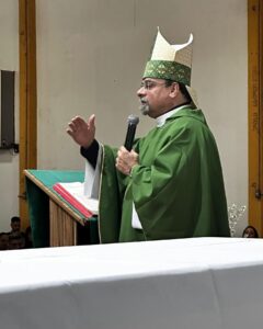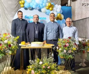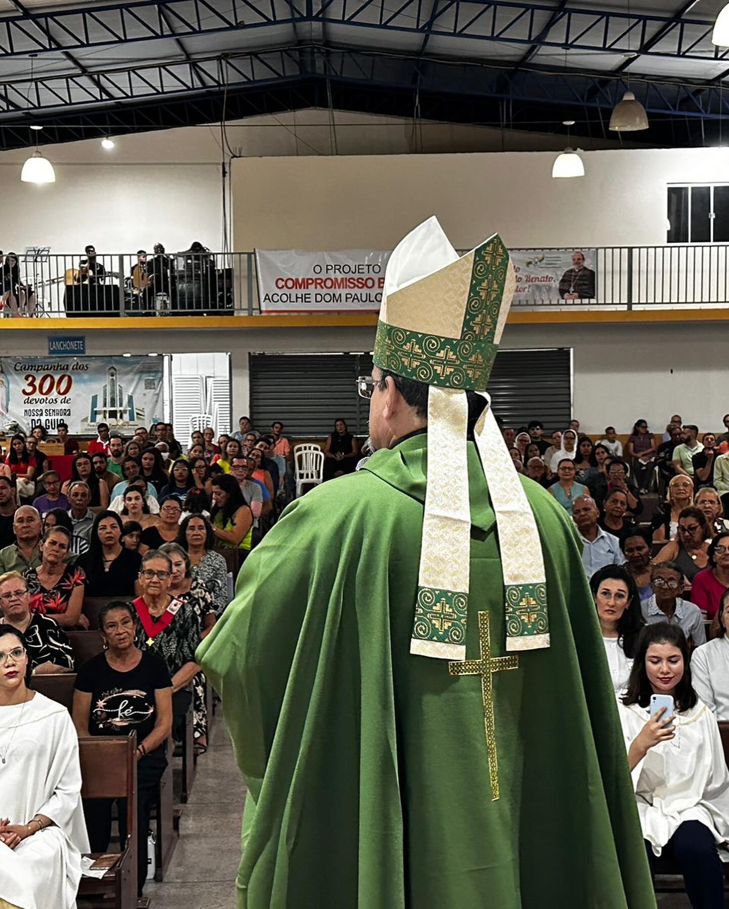 Após a primeira missa de Dom Paulo na Catedral de Nossa Senhora da Guia, a comunidade festejou a chegada de seu novo bispo com um momento de confraternização e lanche partilhado.