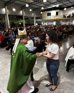 Ao final da celebração, Dom Paulo Renato apresentou o padre Raphael para a comunidade, o anunciando como o novo Reitor do Seminário da Diocese e realizou seu envio para esta nova missão.