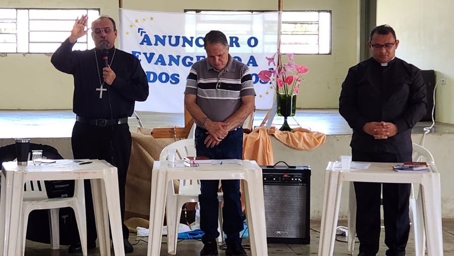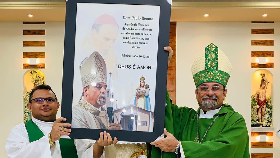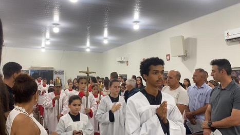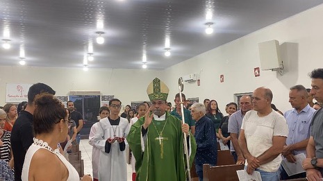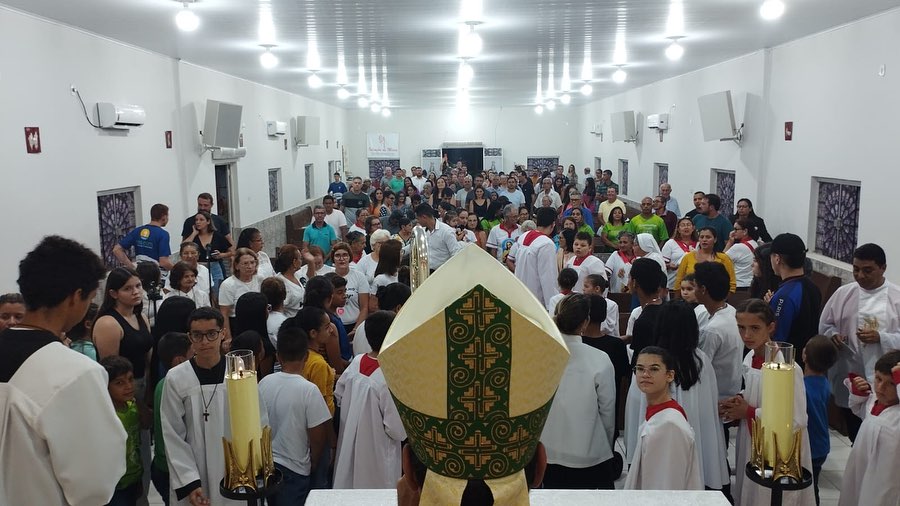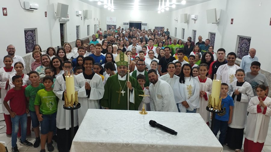 Emoção e Oração, marcam a Primeira Missa de Dom Paulo Renato em Ribeiraozinho MT. Aconteceu na Noite deste sábado 10 de fevereiro de 2024, na Paróquia Nossa Senhora da Abadia em Ribeiraozinho MT. Forania Sul da Diocese de Barra do Garças MT. A Santa Missa presidida pelo nosso Bispo Dom Paulo Renato, na oportunidade foi feito o envio da catequese, com os catequizandos e catequistas. E estreia do Coral – Deus é amor. Composto pelos membros da da Paróquia, um dia memorável a ficar na história.