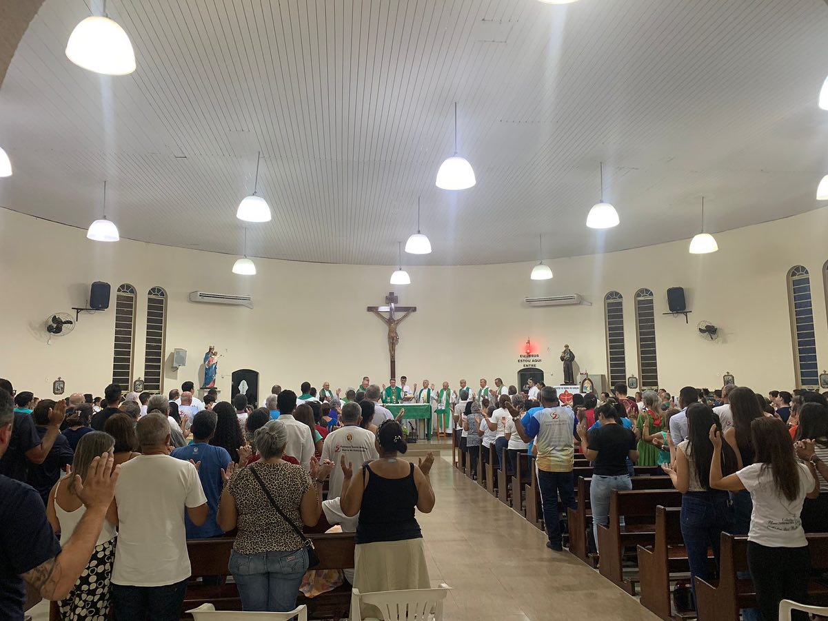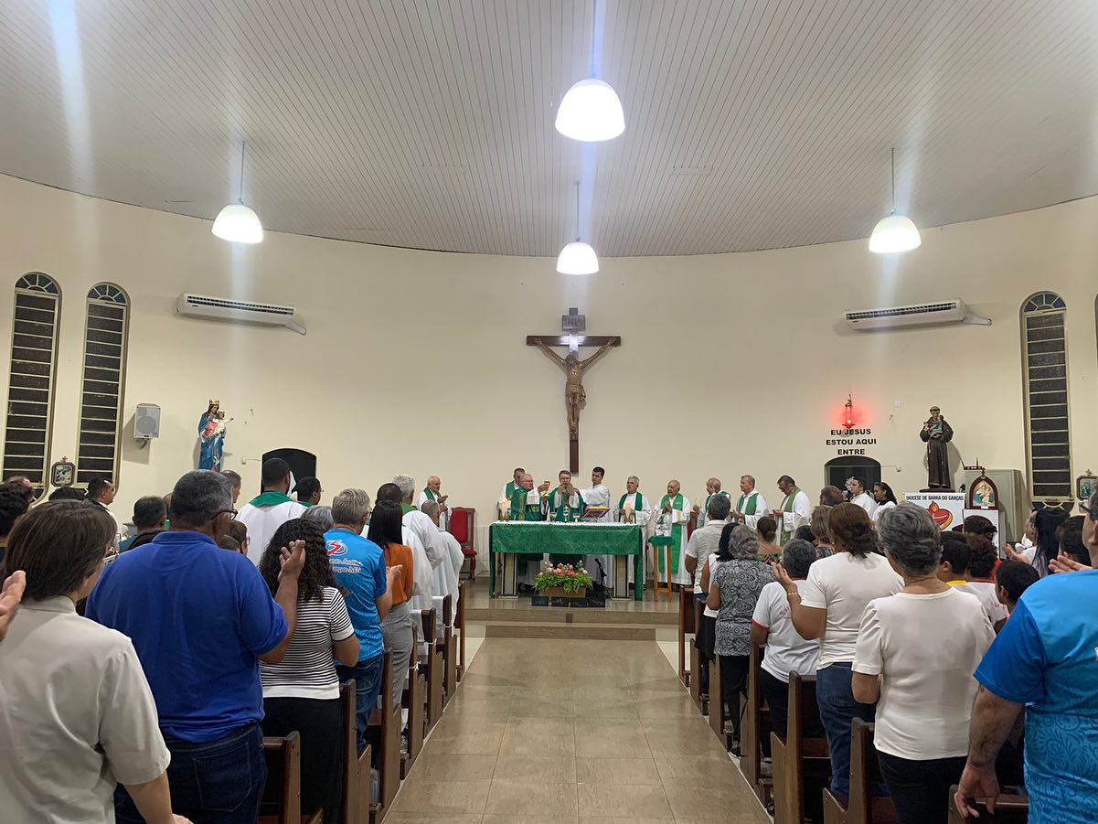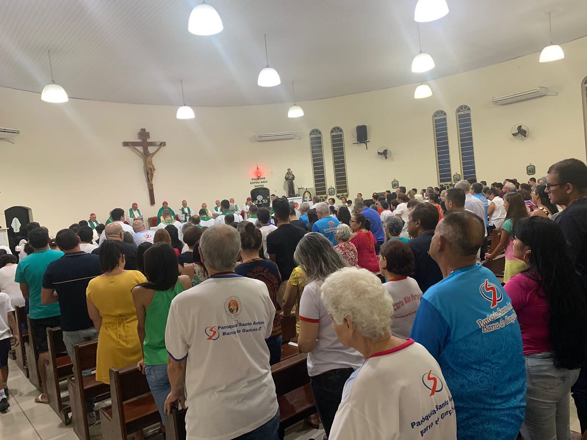 Nesta terça-feira dia 26 de Setembro às 19:30 hs na Matriz Santo Antônio, Forania Central da Diocese de Barra do Garças-MT aconteceu a Santa Missa CELEBRADA pelos Bispos do REGIONAL OESTE 2. A Santa Missa foi presidida por Dom Protógenes José Luft, Bispo da Diocese de Barra do Garças-MT, E concelebrada por Dom Mário Antônio da Silva Arcebispo Metropolitano de Cuiabá,  e Respondendo no momento pela Diocese de Primavera do Leste, que estar vacante; Dom Jacy Diniz Rocha, Bispo da Diocese de Cáceres; Dom José Vieira de Lima, Bispo Emérito da Diocese de Cáceres; Dom Neri José Tondello, Bispo da Diocese de Juìna; Dom Maurício da Silva Jardim, Bispo da Diocese de Rondonópolis; Dom Vital Chitolina, Bispo da Diocese de Diamantino e Paranatinga e também Presidente do Regional Oeste 2. Estiveram presentes nesta Santa Missa os Sacerdotes da Diocese de Barra do Garças: Padre Cristiano, Padre Ivo, Padre Vandilson, Padre Douglas, Padre José Cândido, Padre Cássio, Padre Raphael, Padre Gilberto, Padre Alcides, Padre Geraldo. Padre Waldomiro, Padre Clemente. Diácono Juscelino. Houve também a presença do Prefeito de Barra do Garças Dr Adilson Gonçalves de Macedo e a 1° Dama Leila Batista.