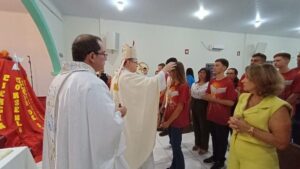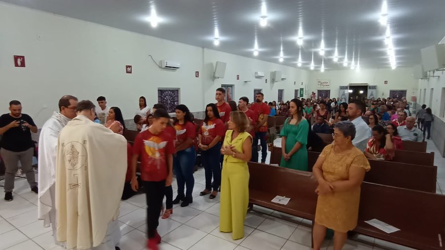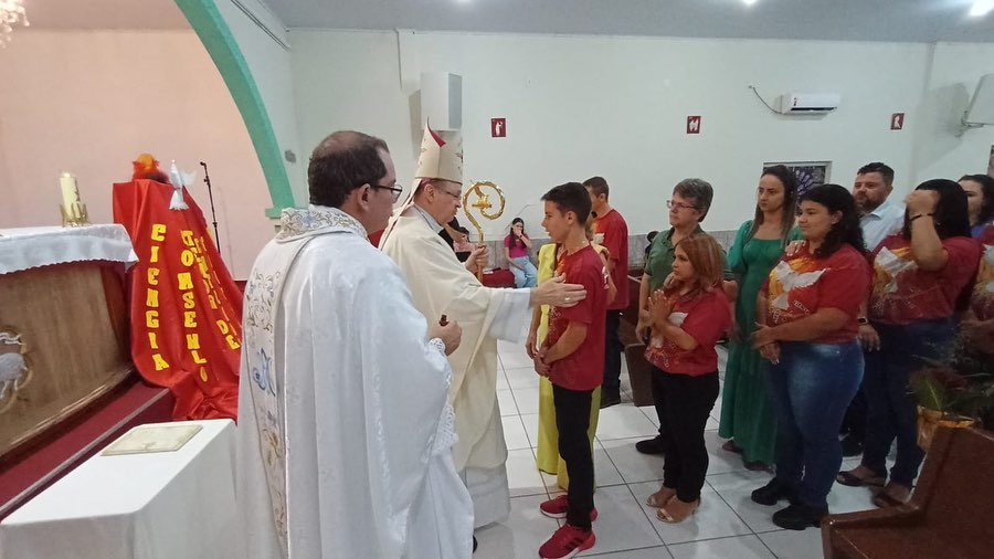 Aconteceu na noite deste sábado 29 de abril de 2023, na Paróquia Nossa Senhora da Abadia em Ribeiraozinho MT. Forania Sul – Diocese de Barra do Garças MT. A Santa Missa com o Rito da Crisma. Presidida por Dom Protogenes José Luft, Bispo Diocesano da Diocese de Barra do Garças MT. E concelebrada pelo Pe. Douglas, Administrador Paróquial, da Paróquia Nossa Senhora Aparecida, em Pontal do Araguaia MT. Padrinhos, Madrinhas, Catequistas, familiares e todo o povo de Deus se fizeram presentes.