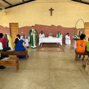 Uma Missa Celebrada na manhã deste domingo, 01 de outubro de 2023, na Capela Santa Teresinha, cujo dia da festa é hoje também, comunidade esta, pertencente a Paróquia São Francisco de Assis, Forania Central da Diocese de Barra do Garças MT. Presidida pelo nosso Bispo Diocesano Dom Protogenes José Luft, e Concelebrada pelo Pe. José Cândido, Administrador Paróquial, deu-se a abertura do mês missionario 2023. “Ide! Da Igreja local aos confins do mundo” é o tema da Campanha Missionária de 2023, cuja inspiração bíblica, baseada no texto dos discípulos de Emaús, é “Corações ardentes, pés a caminho” (cf. Lc 24,13-35). Após três anos refletindo sobre a natureza missionária da Igreja e sobre o “ser missão”, o tema deste ano ajuda a aprofundar a relação entre Igreja-local e a missão ad gentes, enquanto o lema bíblico permanece em sintonia com a realização do 3º Ano Vocacional que a Igreja do Brasil está celebrando.