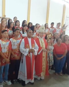 Na manhã do dia 28 de Maio de 2023 as 9 hs da manhã, Domingo de Pentecostes, foi especial para 38 adolescentes e jovens da Catedral, e Capelas São Sebastião e Capela Jesus O Bom Pastor, que receberam em Celebração Solene na Catedral NS da Guia-Barra do Garças MT, Forania Central da Diocese de Barra do Garças MT, o Sacramento da Crisma. A Missa foi presidida por Dom Protógenes José Luft Bispo Diocesano e concelebrada por Padre Cristiano Ribeiro Dias Administrador Paroquial da Catedral..