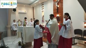 Aconteceu durante a Santa Missa neste sabado, 25 de novembro de 2023, na Paróquia Nossa Senhora da Abadia – Ribeiraozinho MT. (Forania Sul da Diocese de Barra do Garcas – MT). Na Solenidade de Cristo, Rei do Universo. A Benção do Novo Altar, e Ambao. Apresentação dos Novos Candidatos a coroinhas da Paróquia. Encerramento do ano vocacional.