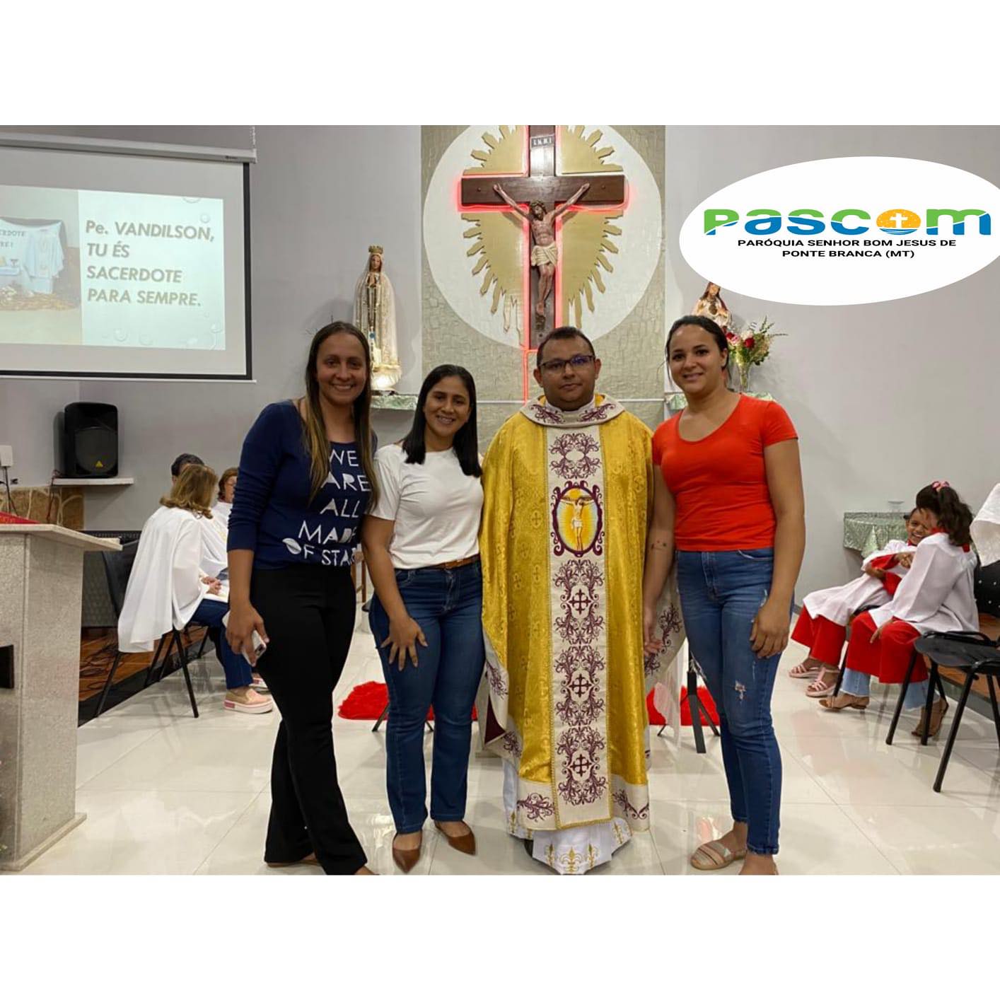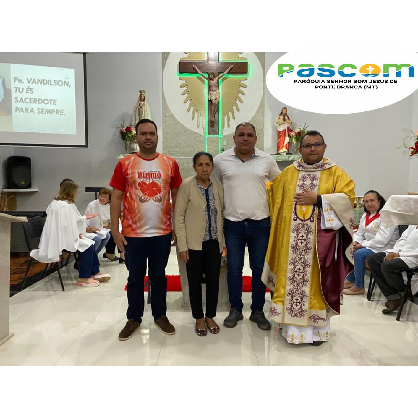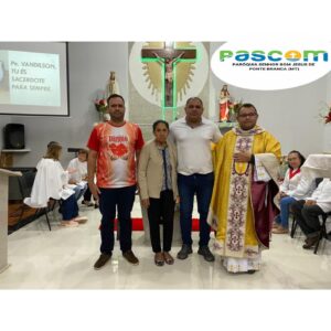 Aconteceu na noite deste domingo dia 02 de julho de 2023, Solenidade de São Pedro e São Paulo – A Santa Missa de Ação de Graças pelo terceiro ano de Ordenação Presbiteral do Pe. Vandilson Pereira Sobrinho. Cerimonia esta que contou com a presença de familiares, amigos, Autoridades do Município, o Prefeito Municipal, e o Vereador Marcio. Alem de outros convidados, como alguns membros de pastorais e movimentos da Paroquia Vizinha, de Ribeiraozinho MT. Coordenadores e Membros de Pastorais e Movimentos de toda Paroquia.