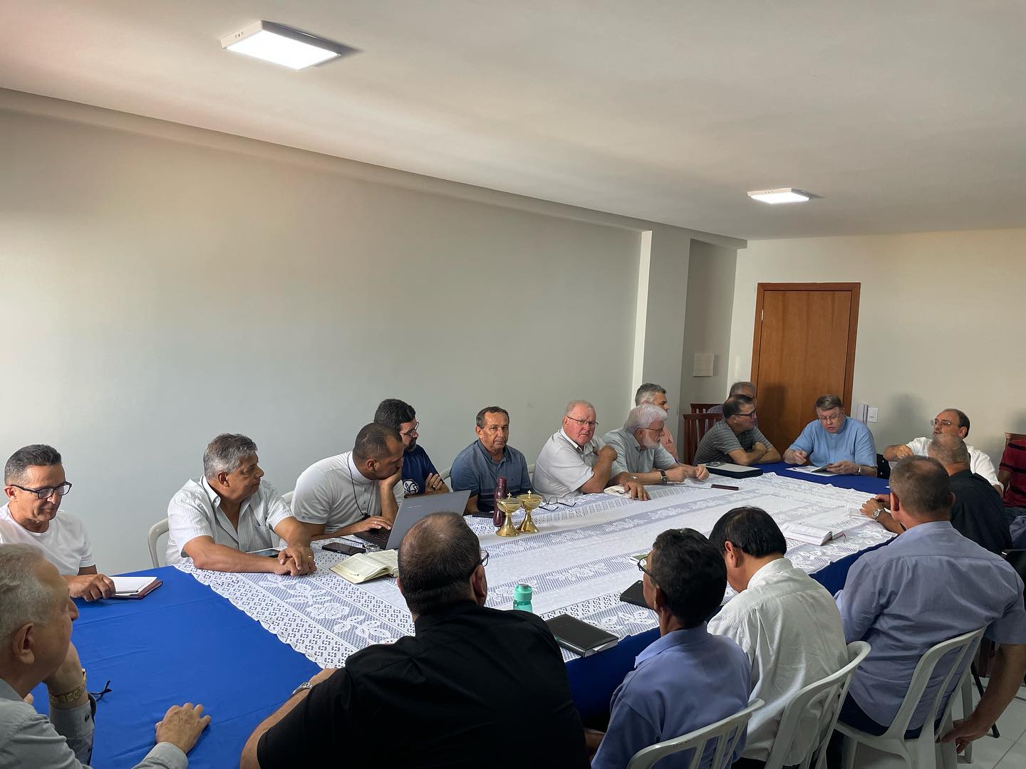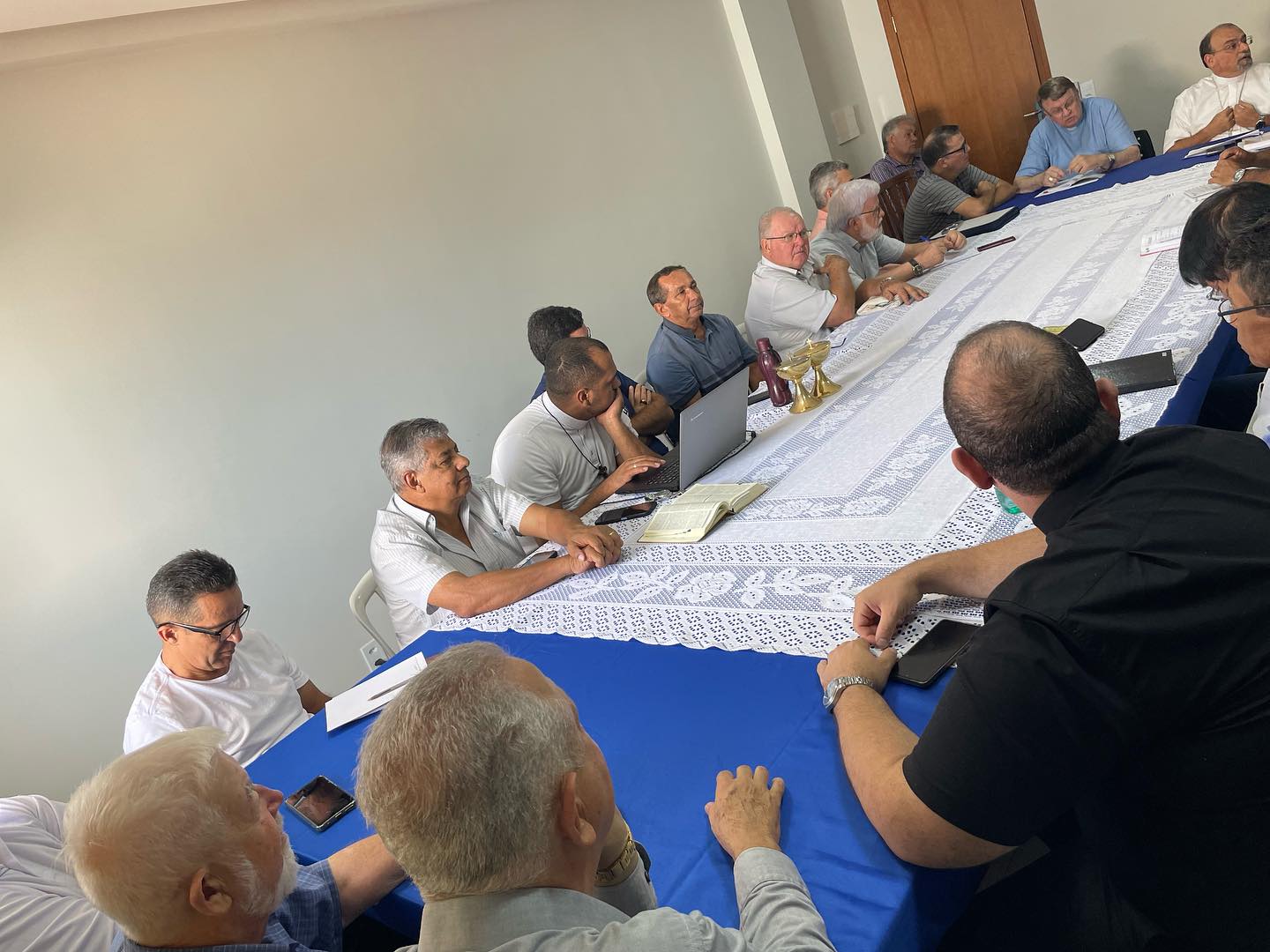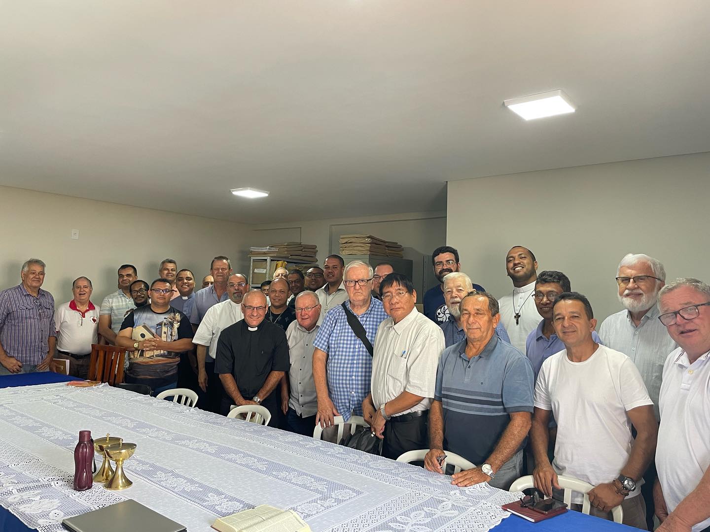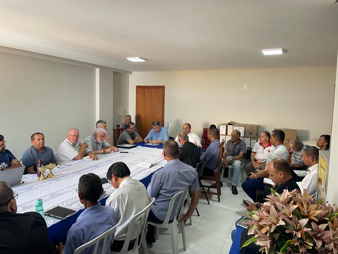 Acontece na manhã desta terça feira, 30 de janeiro de 2024, nas dependências da Cúria Diocesana, em Barra do Garças MT. A primeira reunião do clero de 2024, sob a presidência do nosso Bispo Diocesano Dom Paulo Renato, e que contou com a presença de Dom Protogenes José Luft, Bispo Emérito, e de todos os Padres da Diocese, Diocesanos, e religiosos, além dos diáconos permanentes. A reunião iniciou, com a oração inicial, conduzida por Dom Paulo, que invocou o Espírito Santo, foi lido o texto da unidade João 17,20. Destacando após a leitura, o texto da carta de São João Paulo II, “Novo Milênio Ineunte”. Frisando a promoção de uma espiritualidade de comunhão. Após esse momento, foi passado a palavra a Dom Protogenes, que agradeceu todo o apoio, e comunicou que logo em breve se mudara de residência, para Brasília. Ademais a reunião, continuou, com a apresentação de todos os Padres, e diáconos presentes.