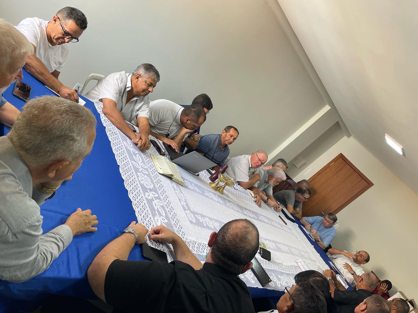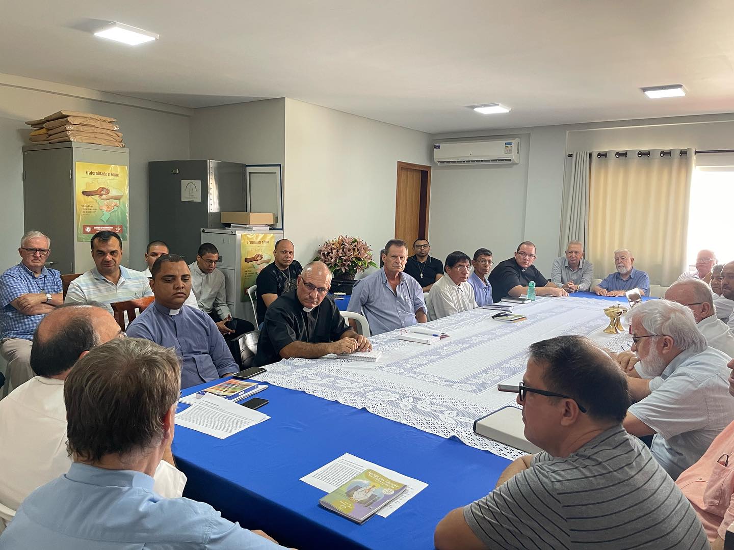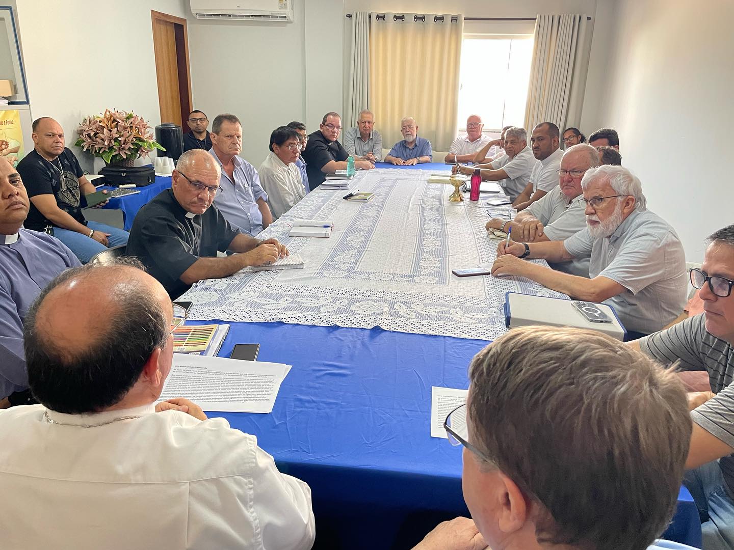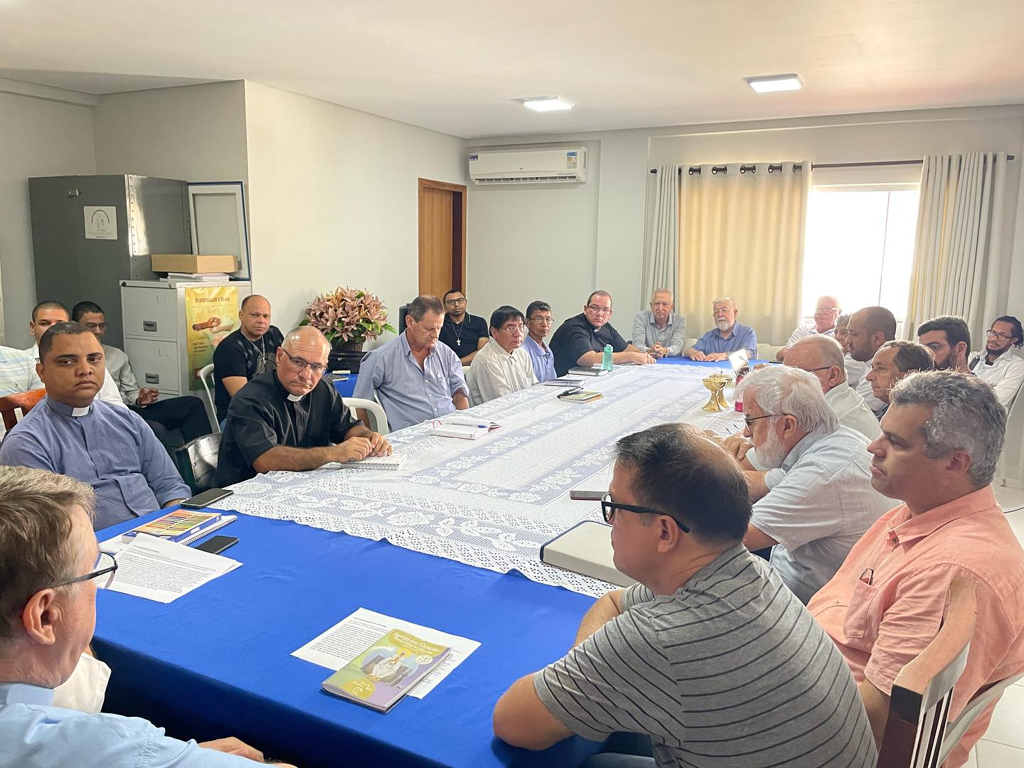 Acontece na manhã desta terça feira, 30 de janeiro de 2024, nas dependências da Cúria Diocesana, em Barra do Garças MT. A primeira reunião do clero de 2024, sob a presidência do nosso Bispo Diocesano Dom Paulo Renato, e que contou com a presença de Dom Protogenes José Luft, Bispo Emérito, e de todos os Padres da Diocese, Diocesanos, e religiosos, além dos diáconos permanentes. A reunião iniciou, com a oração inicial, conduzida por Dom Paulo, que invocou o Espírito Santo, foi lido o texto da unidade João 17,20. Destacando após a leitura, o texto da carta de São João Paulo II, “Novo Milênio Ineunte”. Frisando a promoção de uma espiritualidade de comunhão. Após esse momento, foi passado a palavra a Dom Protogenes, que agradeceu todo o apoio, e comunicou que logo em breve se mudara de residência, para Brasília. Ademais a reunião, continuou, com a apresentação de todos os Padres, e diáconos presentes.