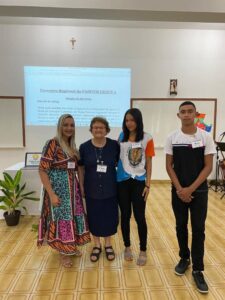 De nossa Diocese de Barra do Garças – MT. Temos três representantes: Milena da Silva Goncalves, e Maria Eduarda Sousa Silva, que compõe a equipe executiva Diocesana da Pascom. E o agente da Pascom, Marcelo Sobrinho do Nascimento.