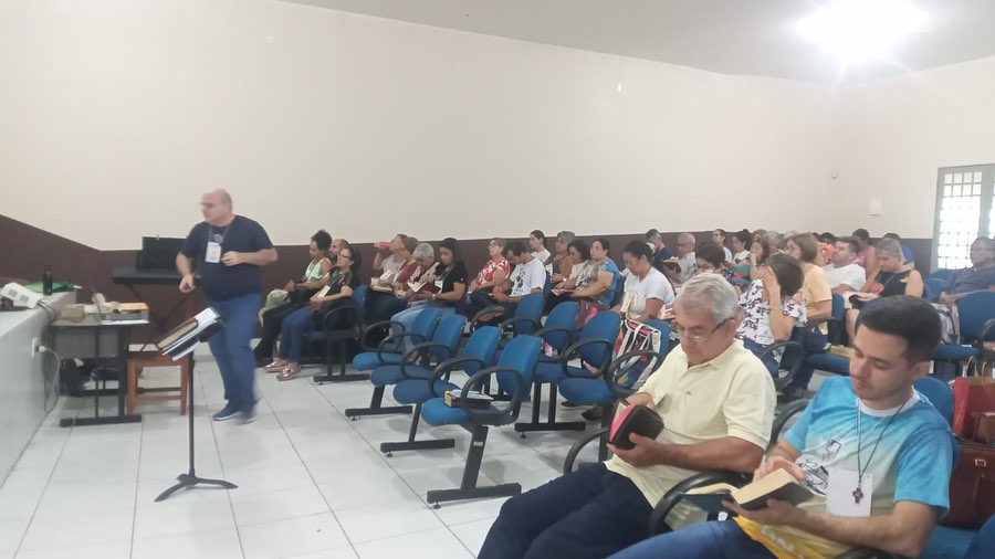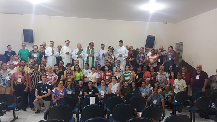Aconteceu durante este final de semana no CESPA (Centro de Evangelização São Paulo Apóstolo). Sexta 22, sábado 23, encerrando neste domingo 24 de setembro com o almoço o Retiro dos Mesc’s (Ministros Extraordinário da Sagrada Comunhão). Da forania Central da Diocese de Barra do Garças MT. Que contou com a participação de dos ministros de Água Boa MT. O tema abordado foi: Os Sete EU SOU de Jesus, no Evangelho segundo João. Tendo como Assessor: Marco Campos, coordenador diocesano de Liturgia. Durante o retiro foi celebrado a Santa Missa pelo Pe. Douglas Ayres. Administrador da Paróquia Nossa Senhora Aparecida, em Pontal do Araguaia MT. E responsável pelo CESPA.