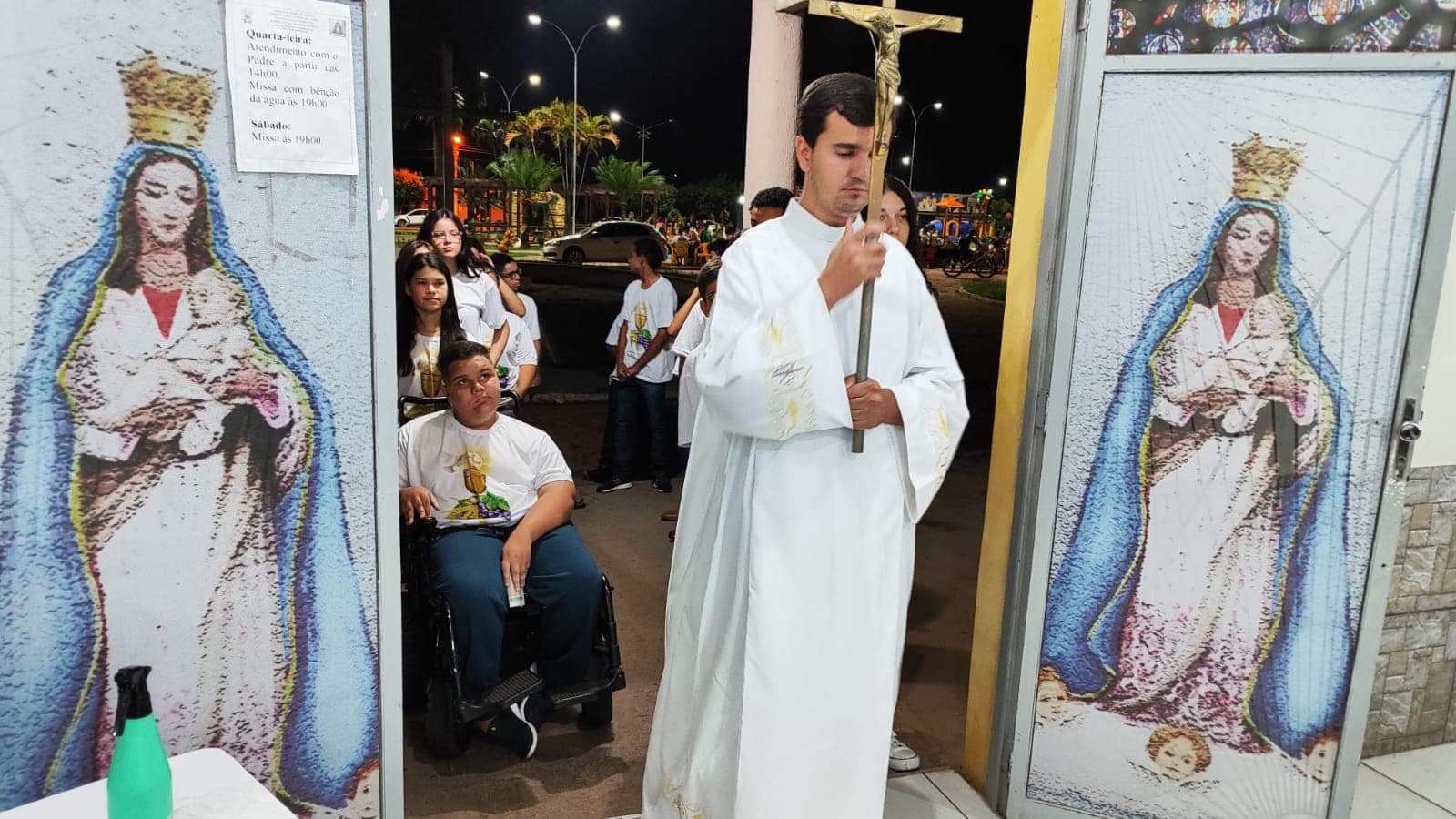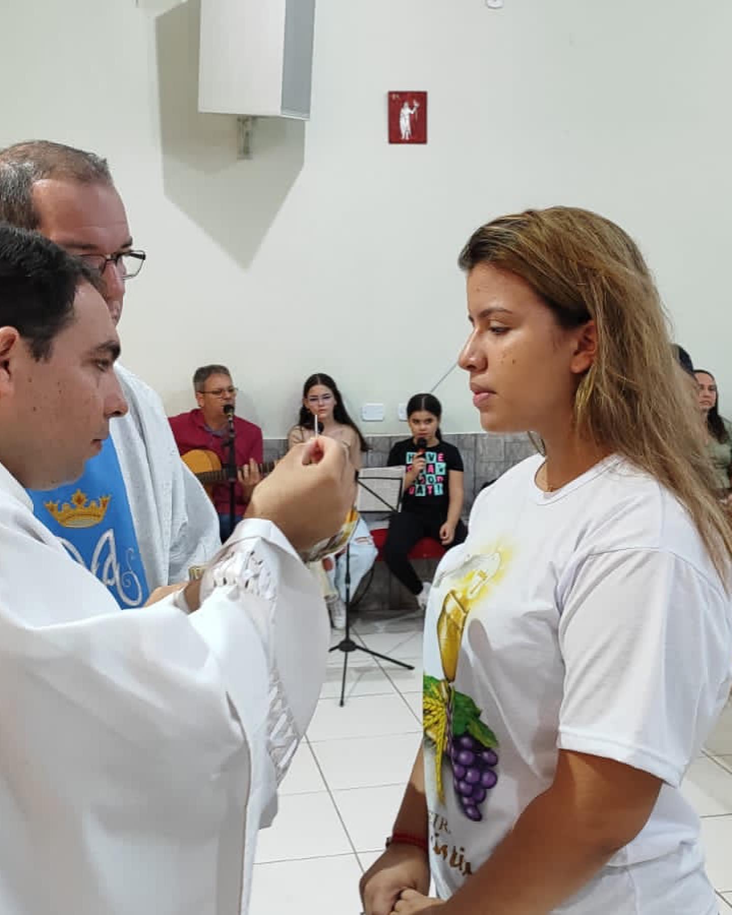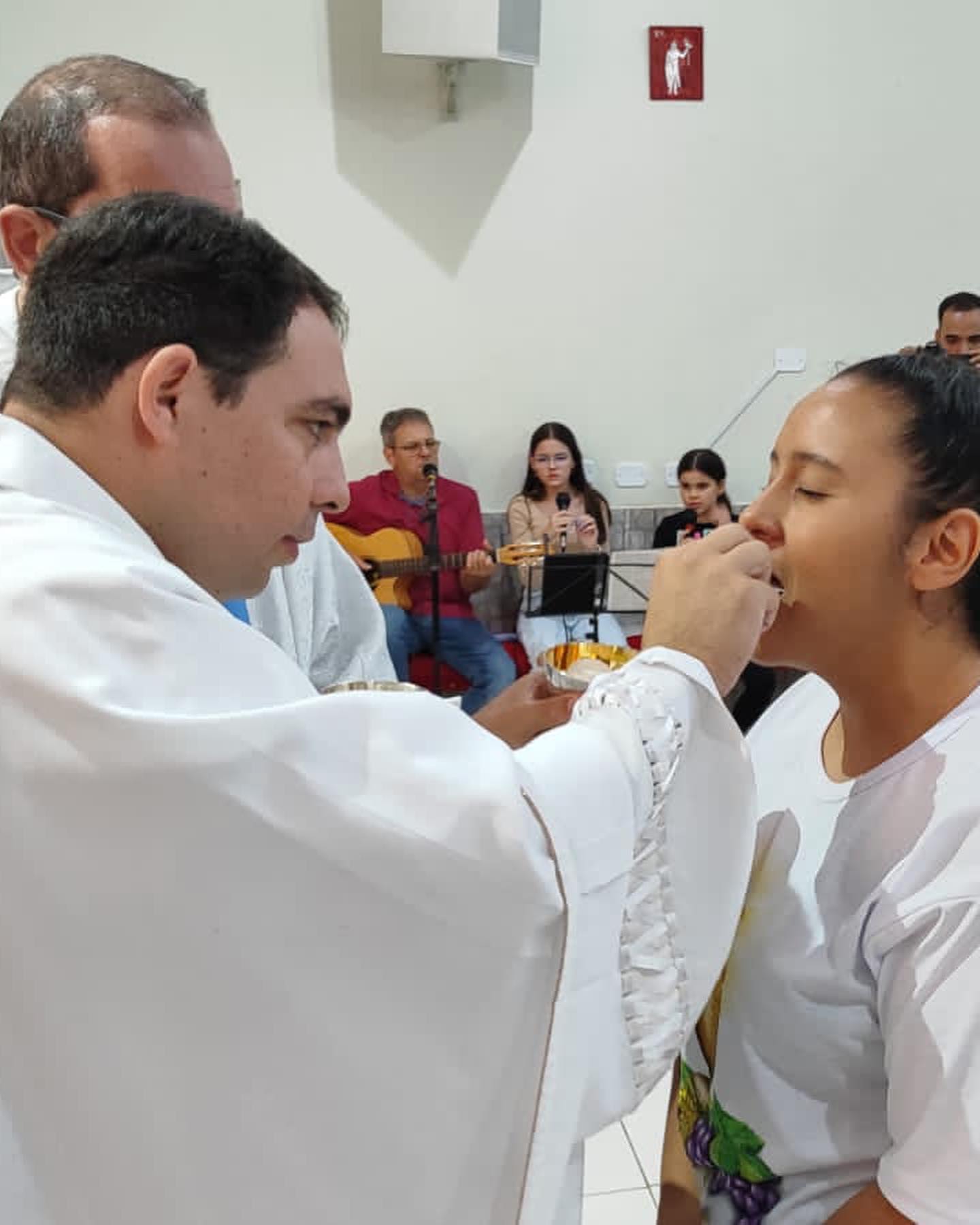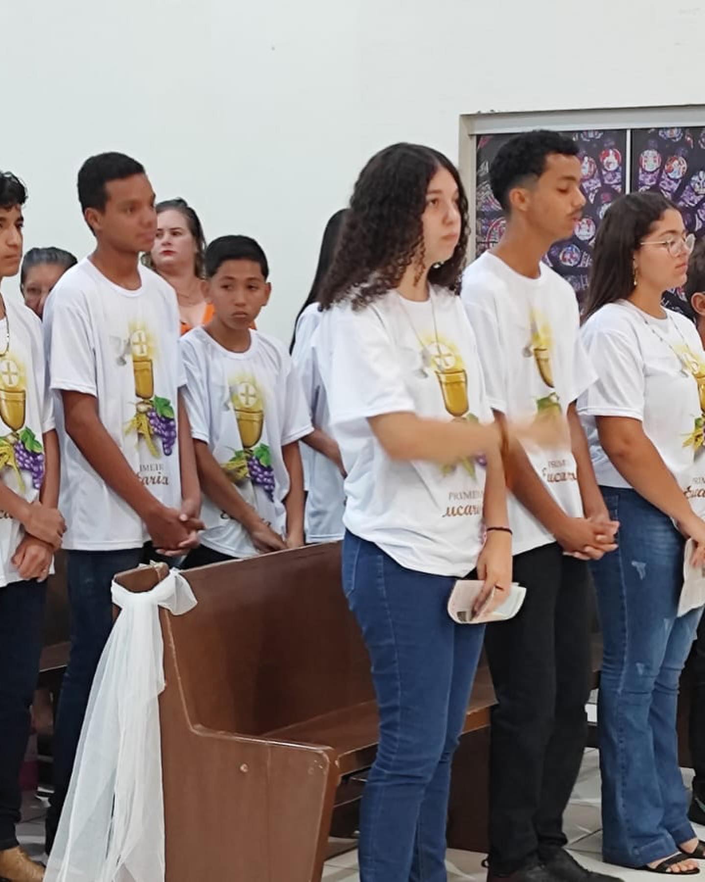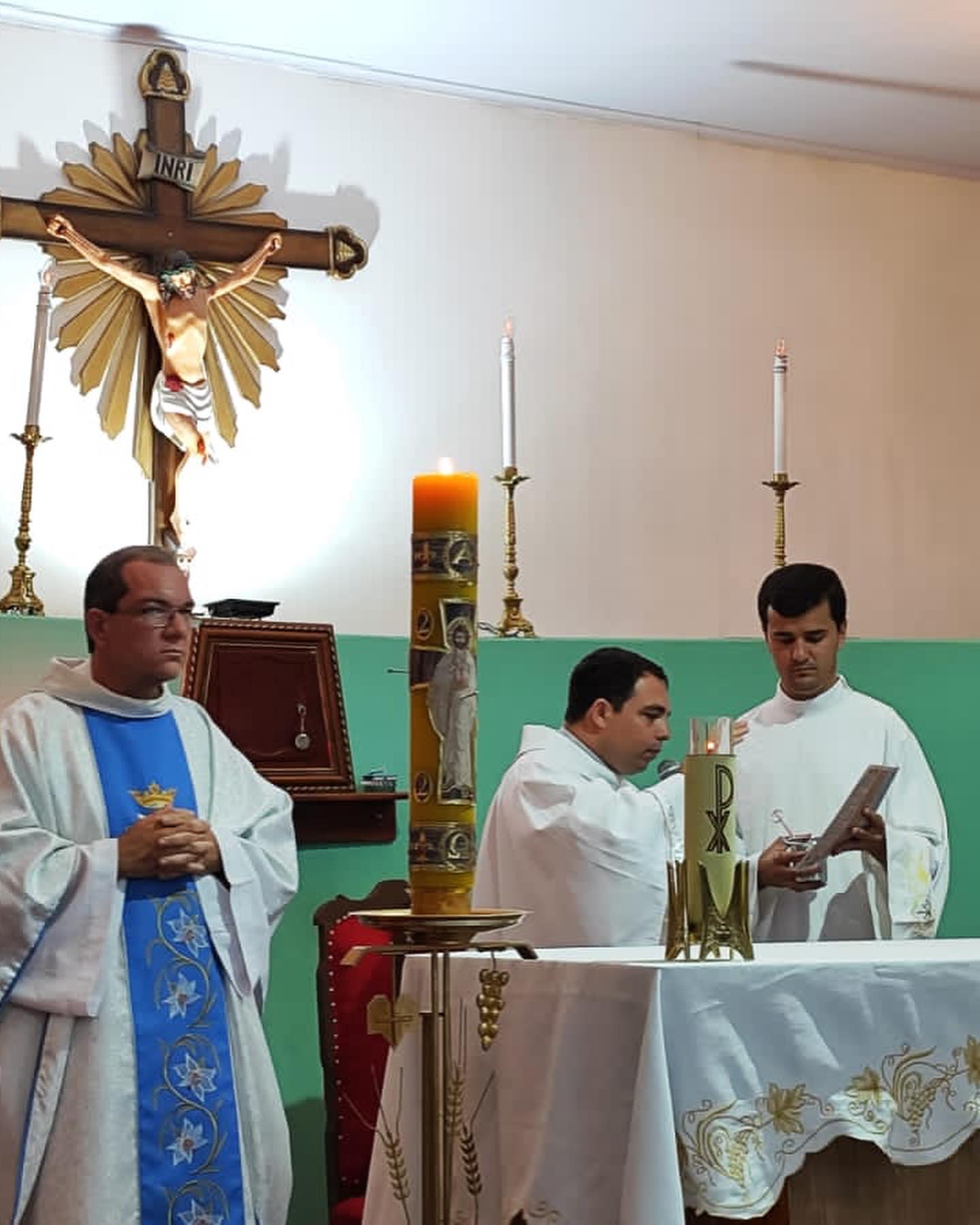 Aconteceu neste sábado 06 de maio de 2023 na Paroquia Nossa Senhora da Abadia, em Ribeiraozinho MT – Forania Sul – Diocese de Barra do Garças MT. A Santa Missa, onde foi conferida o Sacramento da Sagrada Comunhão, aos adolescentes da Paroquia. Presidiu a Santa Missa, o Pe. Diego Bento. Filho Natural de Ribeiraozinho MT. Que no momento atua na cidade da Chapada dos Guimaraes, Diocese de Primavera do Leste MT. Concelebrou a Santa Missa o Pe. Douglas Aires, Administrador Paroquial da Paroquia Nossa Senhora Aparecida, em Pontal do Araguaia MT. O Pe. Douglas, é o responsável pelo SAV – Serviço de Animação Vocacional da Diocese, que trouxe o Seminarista Alex, que irá fazer seu estagio pastoral, ajudando nos trabalhos Pastorais da Paroquia em Ribeiraozinho MT.
