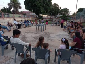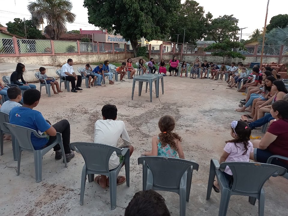 Momento de oração e brincadeiras em comemoração ao dia das crianças.