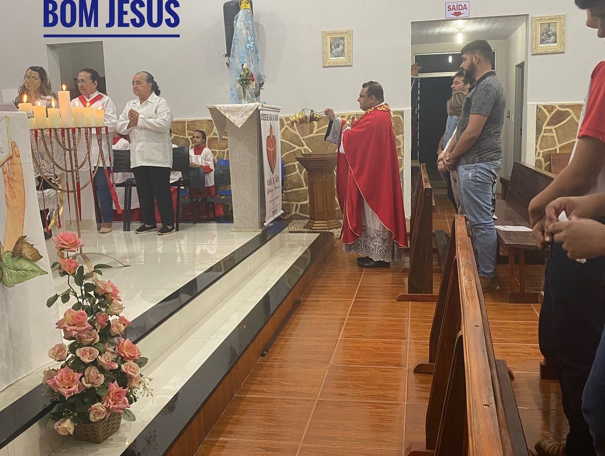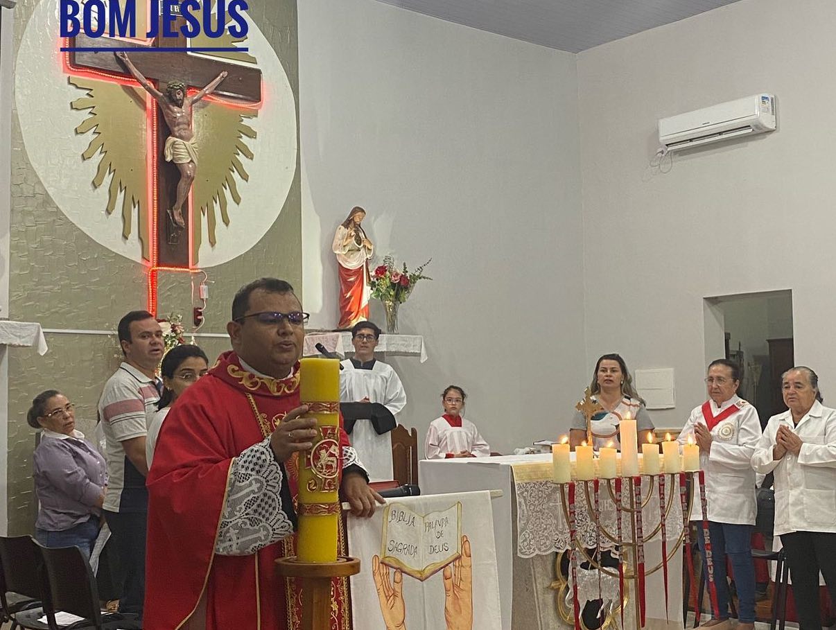 Santa Missa Solene de Domingo de Pentecostes – 28 de maio de 2023. Paróquia Senhor Bom Jesus de Ponte Branca MT. Rito de apagar o cirio: Digna-Te, ó Cristo, nosso dulcíssimo Salvador, de acender as nossas lâmpadas da fé; que em Teu templo elas refuljam constantemente, alimentadas por Ti, que sois a luz eterna; sejam iluminados os ângulos escuros do nosso espírito e sejam expulsas para longe de nós as trevas do mundo/. Faz que vejamos, contemplemos, desejemos somente a Ti, que só a Ti amemos, sempre no fervente aguardo de Ti, Que vives e reinas pelos séculos dos séculosCréditos: Fotos: Alice, Edição: Eduarda. Celebrante: Pe. Vandilson.